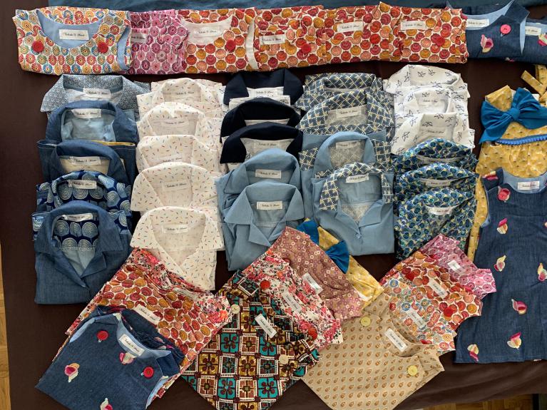 nous a offert 50 tenues dessinées et confectionnées par ses soins.